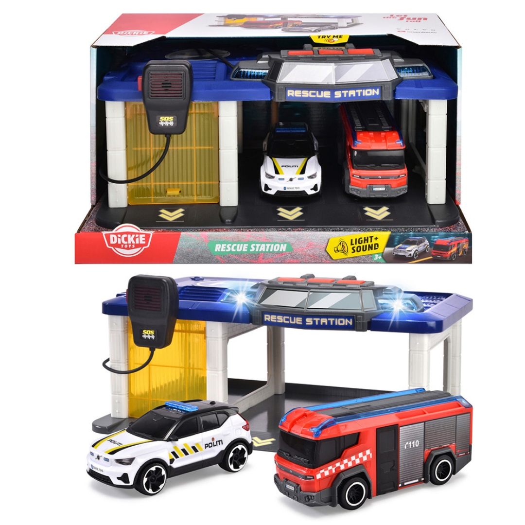 Dickie Toys Norsk Redningsstasjon er et omfattende lekesett som inkluderer en redningsstasjon og to utrykningskjøretøy. Settet er designet for å gjenskape spennende redningsoperasjoner og oppfordrer til fantasifull lek.