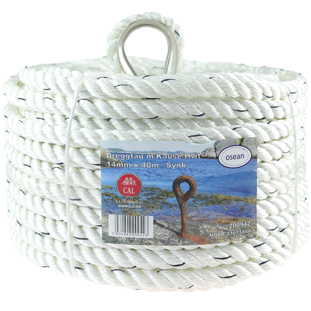 Dreggtau med kause 14mm 40m