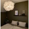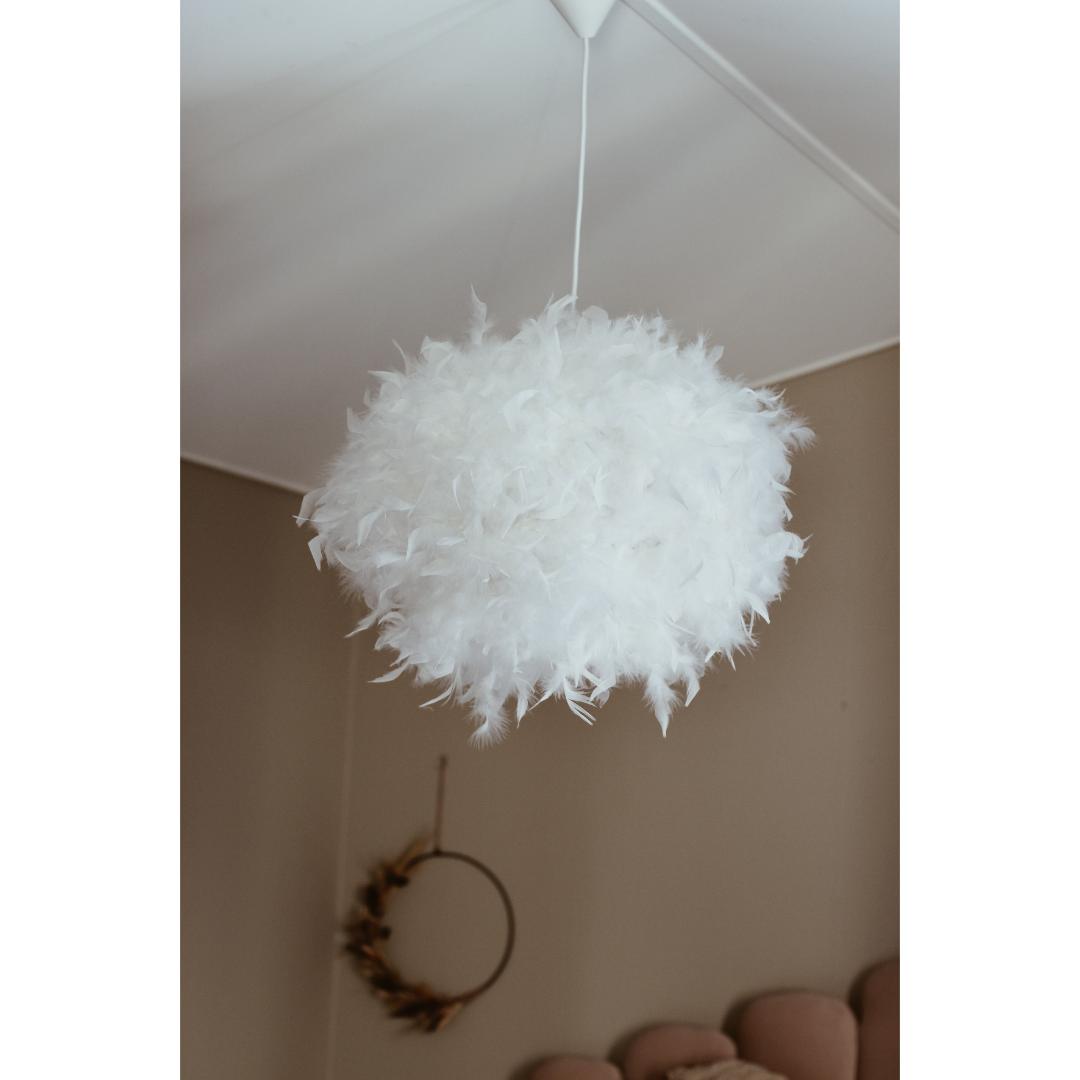 Dun er en myk og luftig taklampe laget av ekte fjærmateriale som gir et varmt og behagelig lys. Perfekt i soverommet eller stuen for et rolig og lunt uttrykk. Fjærene er etisk hentet og dyrevennlig produsert.