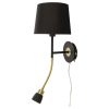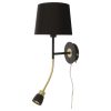 Eketorp vegglampe i svart metall med detaljer i matt messing kombinerer klassisk design med moderne funksjonalitet. Lampen har både hovedlys og justerbar leselampe med integrert LED, perfekt ved sengen eller i stuen. Separate brytere lar deg styre hvert lys individuelt, og den solide metallkroppen gir et eksklusivt preg.