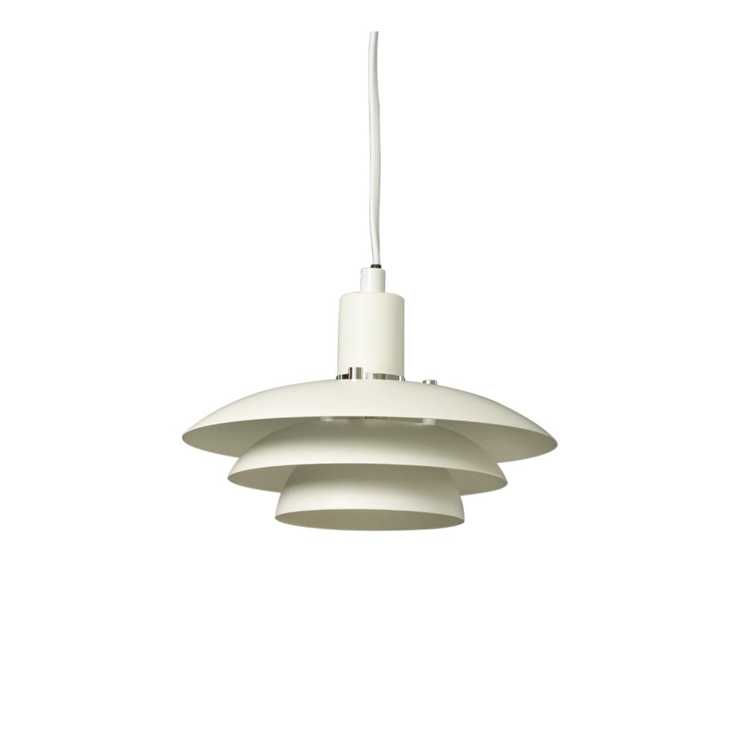 Epsilon vinduspendel i sandfarget metall har en tredelt skjerm som fordeler lyset behagelig og reduserer gjenskinn. Lampen har 4 m ledning med bryter og leveres med dekorative ringer og knotter i både krom og matt messing. En tidløs modell som passer godt i vindu, ved seng eller som stemningslys i stuen.