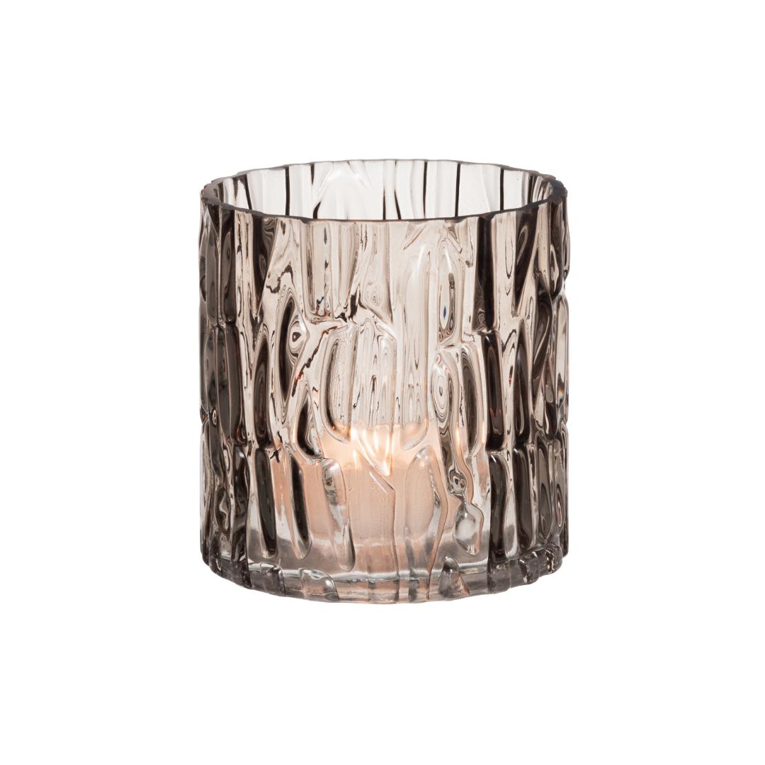 Honka glasslykt med ribbet overflate inspirert av furubark. Den granittgrå, transparente tonen gir et rolig uttrykk i vinduskarm eller på bord. Størrelse 12 x 12,5 cm.