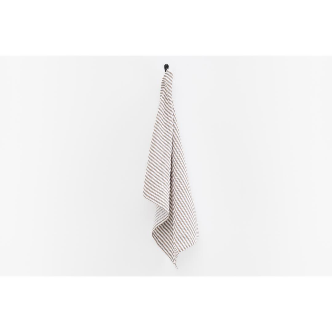 Stripet kjøkkenhåndkle i 100 % resirkulert bomull – et slitesterkt og absorberende valg til daglig oppvask og kjøkkenarbeid. Størrelse 45 x 65 cm og maskinvask på 40 °C.