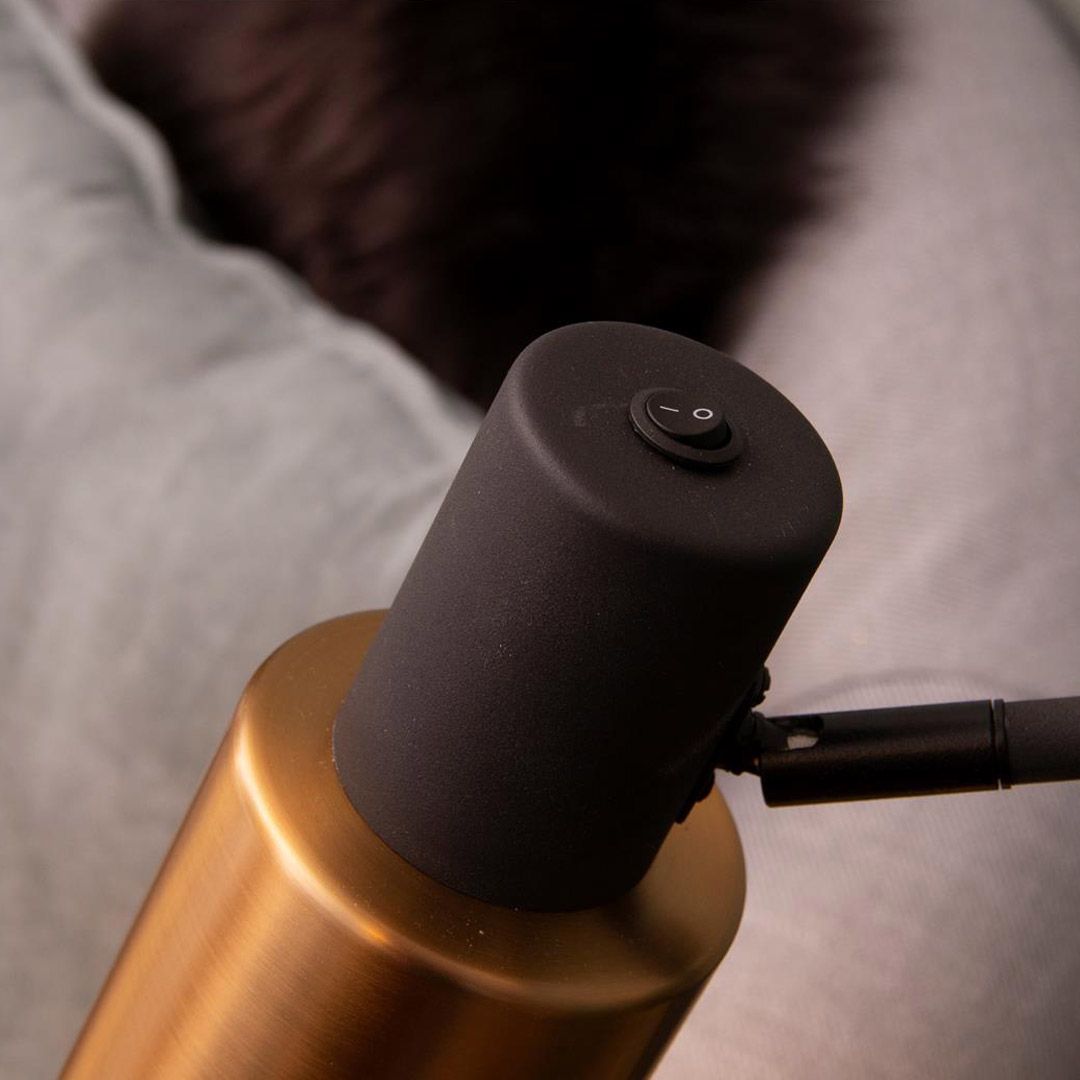 Faro gulvlampe med av/på bryter lett plassert tilgjengelig på lampehodet.