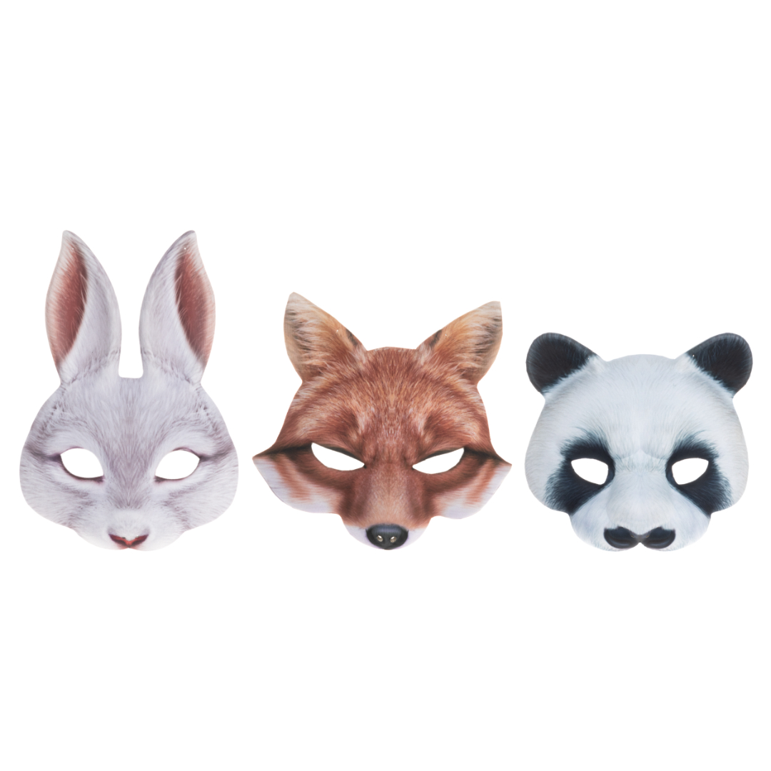 Dyremasker i mykt EVA-materiale for 17. mai, karneval og temafester. Voksenstørrelse og flere motiver.