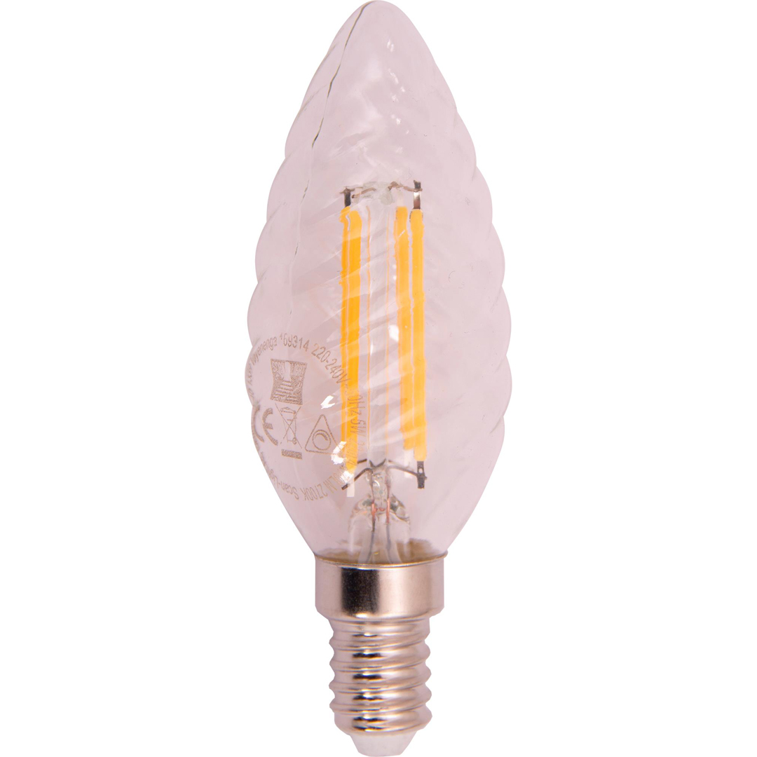 Filament LED er en lyspære som passer perfekt brukt i interiør som stuer, kjøkken, soverom osv. der man ønsker god lyskvalitet som denne lyspæren gir. Lyspæren er til forveksling svært lik de gamle gode glødepærene som har vært i bruk i mer en 100 år, men med et langt lavere energiforbruk. 470 Lumen tilsvarer 40 Watt. Farge temperatur (Kelvin): 2700 (Klart glass). Lumen: 470 ?10 %. Fargegjengivelsesindeks: (Ra) >90. Dimbar: Ja. Levetid: opp til 15 000 = 15 år (ved 2,7 timer pr dag). Spredning på lyset: 360. Opptenningstid til 100% av lyseffekten: Umiddelbart. Antall tennsykluser: 15 000. Lumen-vedlikeholdsfaktor ved slutten av nominell levetid: 70 %. Form: Mignonpære. Høyde: 95mm. Diameter: 35mm. Lyspærens arbeidstemperatur: -30 C til +40 C. Lyspærens sokkel: E14. Spenning: 220-240V. Watt: 5W. Kvikksølvmengde: 0 mg. UV filter: Ja. CE merket: Ja. RoHS: Ja. Energiklasse: A++.
