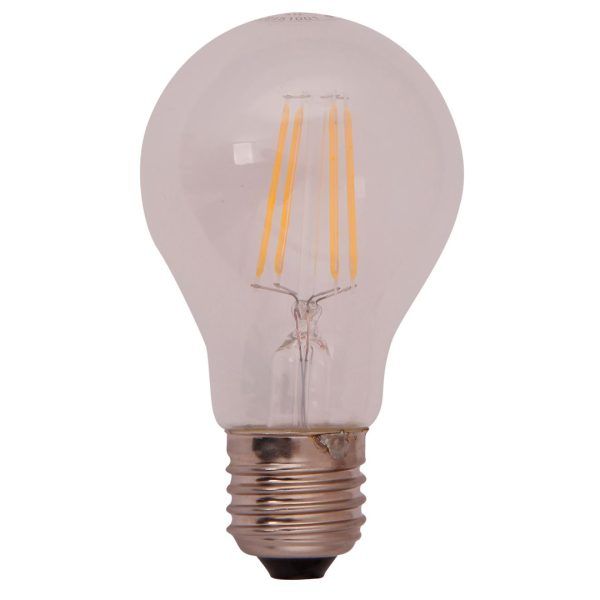 Filament LED er en lyspære som passer perfekt brukt i interiør som stuer, kjøkken, soverom osv. der man ønsker god lyskvalitet som denne lyspæren gir. Lyspæren er til forveksling svært lik de gamle gode glødepærene som har vært i bruk i mer en 100 år, men med et langt lavere energiforbruk. 806 Lumen tilsvarer 60 Watt. Farge temperatur (Kelvin): 2700 (Varm hvit). Lumen: 806 ?10 %. Fargegjengivelsesindeks: (Ra) >90. Dimbar: Ja. Levetid: opp til 15 000 = 15 år (ved 2,7 timer pr år). Spredning på lyset: 360. Opptenningstid til 100% av lyseffekten: Umiddelbart. Antall tennsykluser: 15 000. Lumen-vedlikeholdsfaktor ved slutten av nominell levetid: 70 %. Form: Normalpære. Høyde: 105 mm. Diamter: 60mm. Lyspærens arbeidstemperatur: -30 C til +40 C. Lyspærens sokkel: E27. Spenning: 220-240V. Watt: 8W. Kvikksølvmengde: 0 mg. UV filter: Ja. CE merket: Ja. RoHS: Ja. Energiklasse: A++.