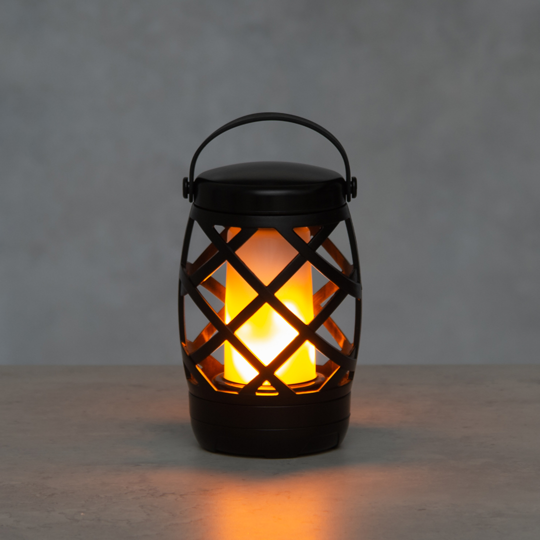Finnlumor batteridrevet lanterne med flamme. 3 fuksjoner: «live» flamme og 2 jevnt brennende lysstyrkenivåer. Størrelse: 9,5 x 9,5 x 15,0 cm. IP klasse: IP44, kan også brukes ute.
