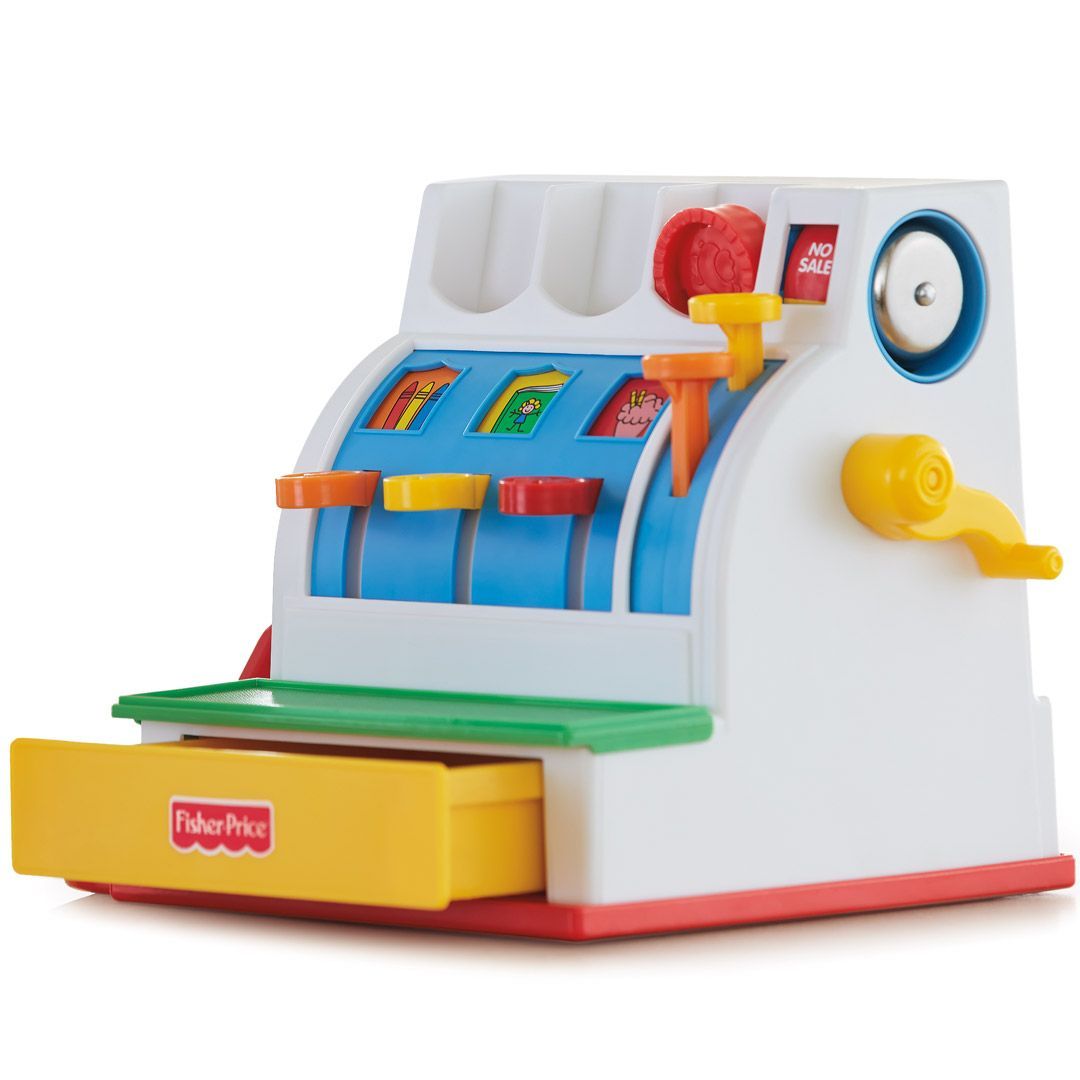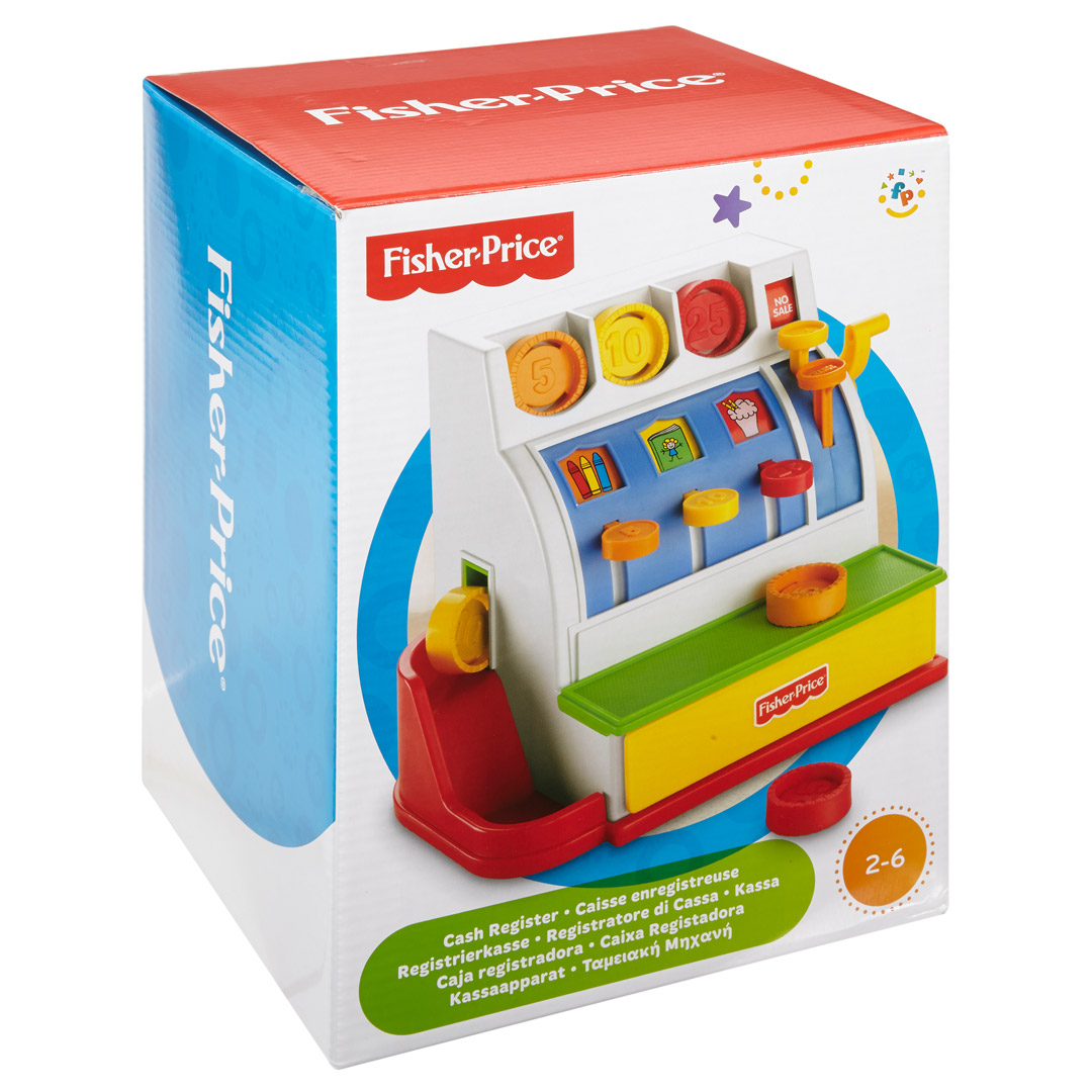 Fisher-Price kasseapparat lar barna ta del i butikkopplevelsen fra deer helt små. Lek butikk med venner og familie, ta i mot penger og latsom du har din helt egen butikk. Vri på håndtaket for å ringe med klokkenog åpne skuffen. So rter myntene og slipp dem ned i de rette hullene. Mynten havner i kasseskuffen , eller kommer trillende ned sklien. Mål:D 20 x H 26 x B 20 cm. Alder: fra 2 år.