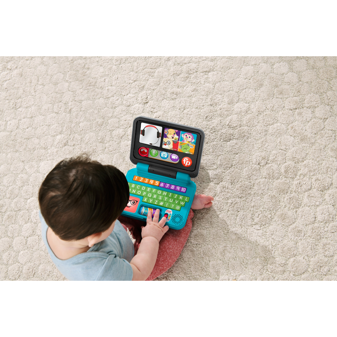 Den elektroniske Let’s Connect Laptop fra Fisher-Price lar barna late som om de har videosamtaler med Valpen og vennene hans. Med lys, sanger og lyder om alfabetet, farger og telling, vil barnet lære gjennom lek. De kan trykke på tastene eller snurre musikkrullen for enda mer morro!