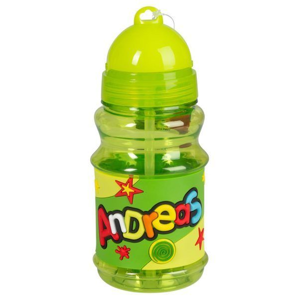 Vannflaske med skrukork og sugerør. BPA fri. Volum: 30 cl.