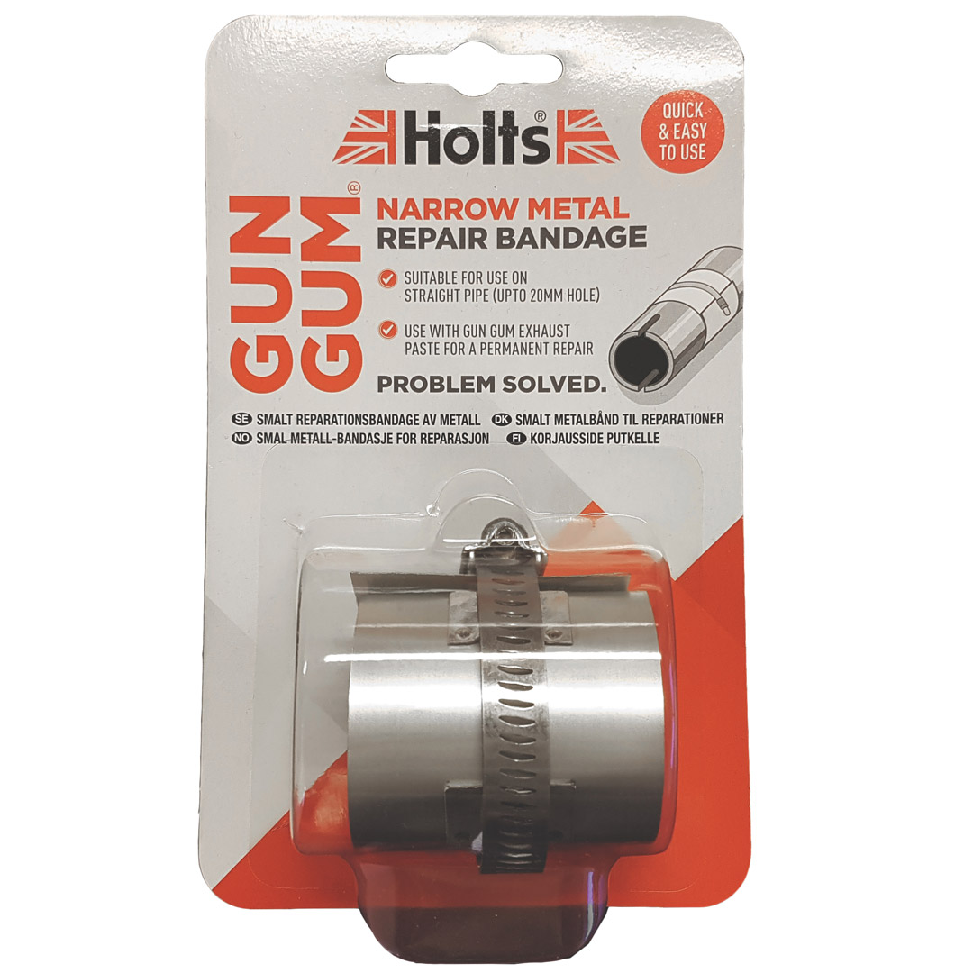 Holts Gun Gum Narrow Metal Repair Bandage er eksosbandasje i metall for mindre reparasjoner av eksosrør mellom 40-50 mm i størrelse.