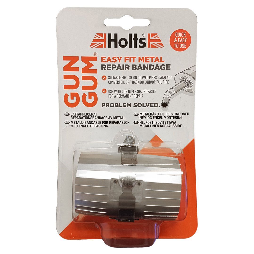 Holts Gun Gum Easy Fit Metal Repair Bandage er en fleksibel eksosbandasje for reparasjoner av lekkasjer på bøyde eksosrør og lekkasjer ved katalysator, eksospotter og lyddempere. NB: Pasta følger ikke med. Brukes gjerne i kombinasjon med Holts Gun Gum.