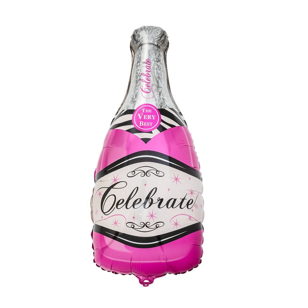 En stor, rosa flaskeformet ballong som passer perfekt til bursdager og festlige anledninger med glamorøst tema.