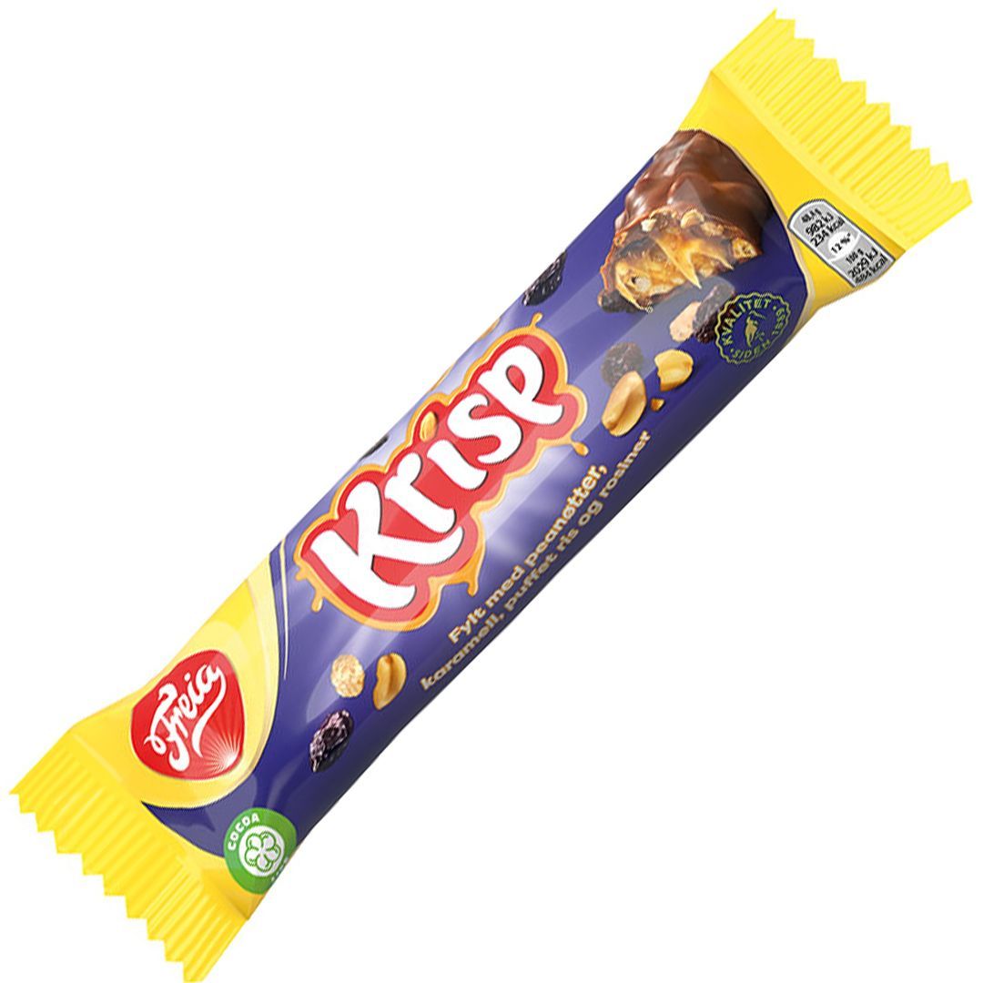 Sukker, Peanøtter, glukose-fruktosesirup, glukosesirup, tørket druer, hvetemel (med jern, niacin, thiamin, kalsium), palmeolje, kakaosmør, kakaomasse, skummet melkpulver, myseprodukt ( melk), mysepulver ( melk), rismel, melkefett, salt, emulgatorer (E442, E476, E471, soyalecitiner), maltekstrakt (fra bygg), maismel, antiklumpemiddel (E170), aromaer, hevemidler (E503, E500), melkeproteiner