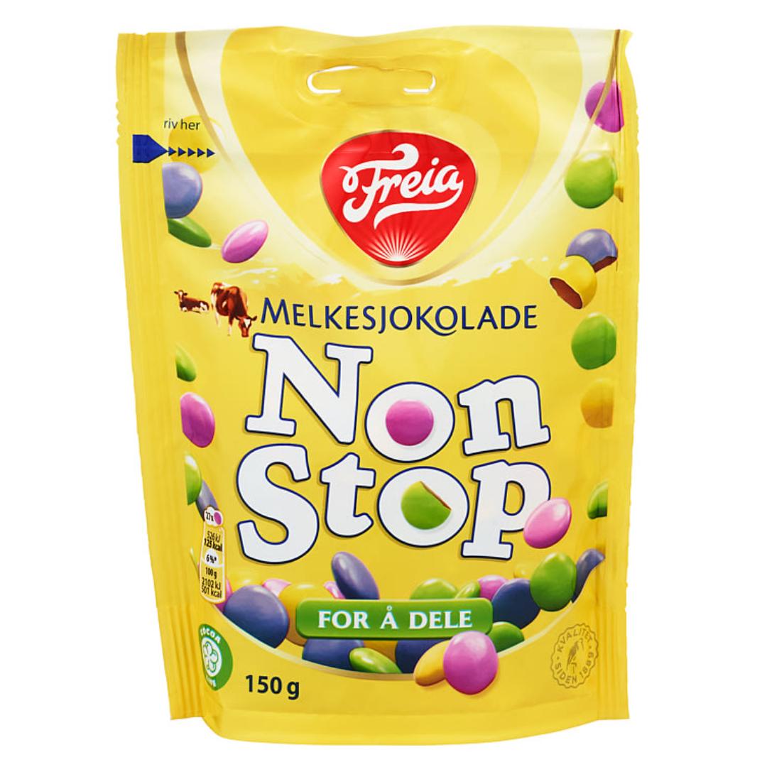 Ingredienser: Sukker, tørrmelk, kakaosmør*, kakaomasse*, overflatebehandlingsmidler (gummi arabikum, karnaubavoks, bivoks), emulgator (soyalecitin), fargestoffer (e100, e120, e133), glukosesirup, aroma.