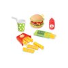 Lekeburgersett med burgerdeler, tilbehør og brød for at barn kan sette sammen og “servere” egne burgere.