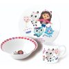 Fargerikt frokostsett med motiv fra Gabby’s Dollhouse som gjør frokosten ekstra gøy for barna. Settet består av kopp, skål og tallerken i solid keramikk som tåler daglig bruk og oppvaskmaskin. Perfekt for små fans av Gabby og kattevennene hennes!