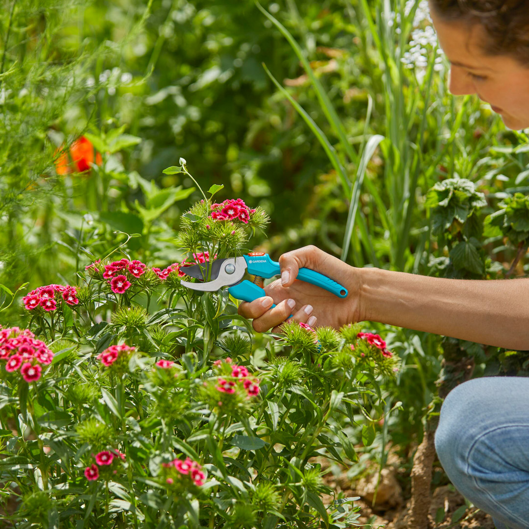 GARDENAS Hagesaks er det rette redskapet for å klippe blomster, unge skudd og grønt tre. Beskjæringssaksen har en klippediameter på 18 mm og er svært komfortabel å bruke takket være de ergonomiske håndtakene. Med sideskjærsprinsippet, et øvre presisjonsslipt og non-stick belagt blad og et nedre blad i rustfritt stålr får du fine og rene kutt. Saksen lukkes enkelt med enhånds sikkerhetslåsen etter bruk. Beskjæringssaksen er kvalitetsprodukt laget i Tyskland, GARDENA gir deg 25 års garanti. Uttrykk din visjon med presisjon. Enkel å bruke, effektiv og slitesterk beskjæringssaks for kreative gartnere.