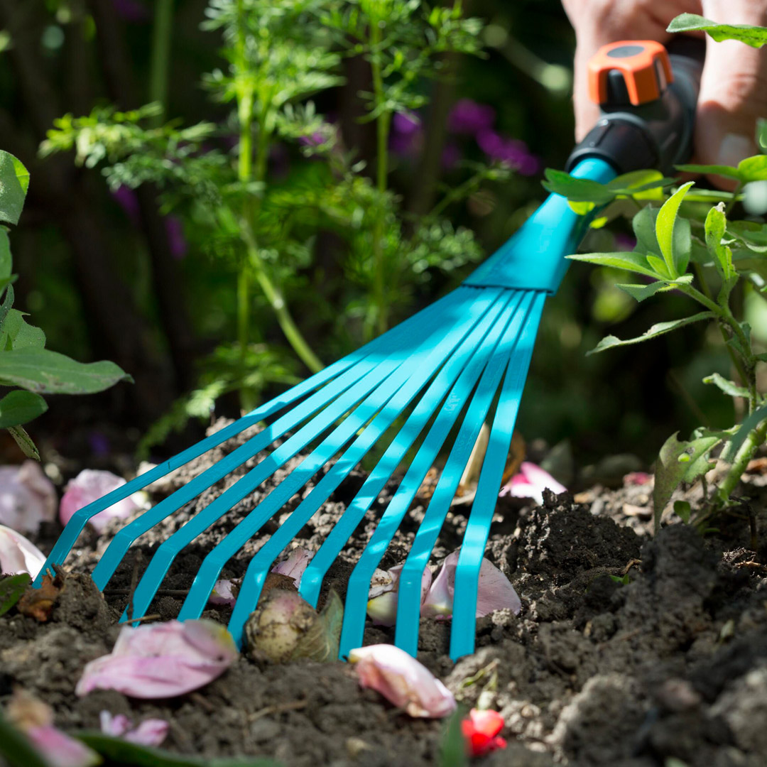 GARDENA combisystem-liten-rive er det perfekte verktøyet til å rense små blomsterbed for løv,ugress og gressavfall i vanskelige områder. Det ergonomisk formede håndtaket, med integrerte myke komponenter, passer perfekt i hånden og er vinklet i enden for ikke å miste grepet. For bekvemt arbeide uten å måtte bøye deg ned, kan håndtaket lett utskiftes med enhvert combisystem skaft. Riven har en bredde på 12 cm. Den er konstruert av høykvalitets stål. Duroplast belegget sikrer lang produktlevetid.