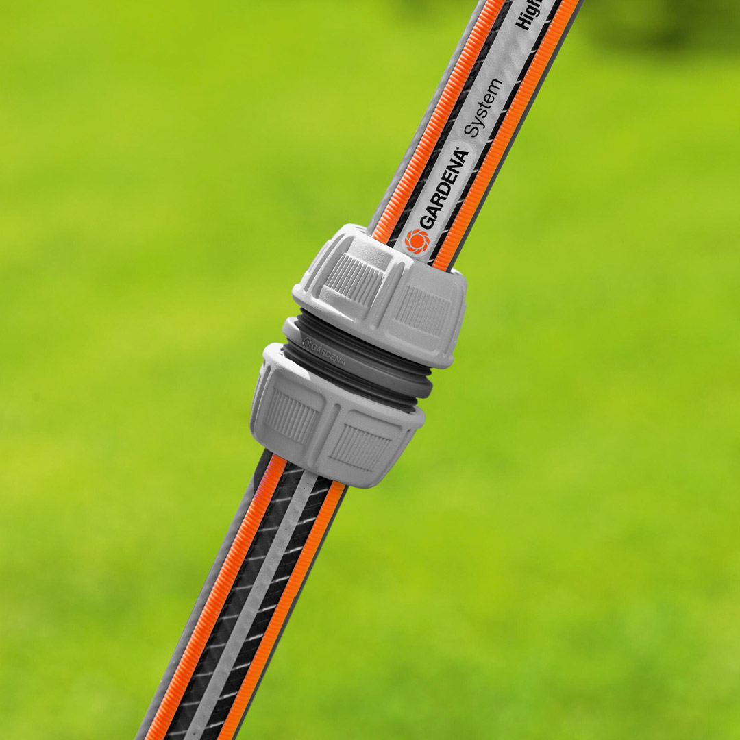 Med bruken av GARDENA slangereparasjonssett kan slanger rask t og enkeltrepareres uten verktøy. Den skadde slangedelen k uttes ganske enkeltut, og GARDENA slangereparasjonssett set tes inn på stedet. POWER GRIP:Spesielt utformet muffe-mutte r for en svært stram passform og problemfrimontering. Til r ask reparasjon av slanger.