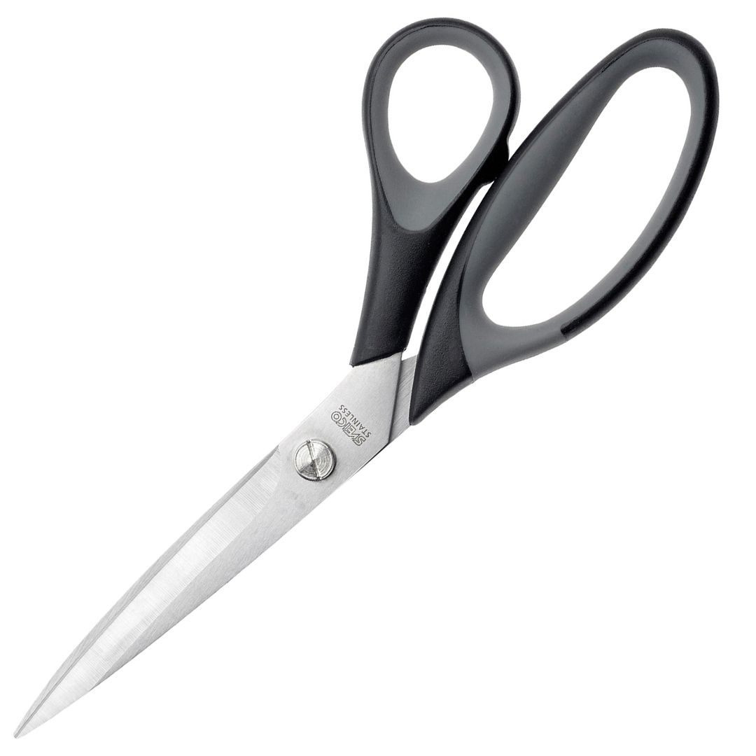 Saks laget av japansk stål. Klipper både tekstiler og papir. Ergonomisk soft grip håndtak for både høre og venstre hendte.