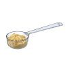 Sett med fem skjeer: kryddermål (1 ml), teskje (5 ml), spiseskje (15 ml), ½ desiliter (50 ml) og 1 desiliter (100 ml). Lange håndtak for lett å skaffe fra høye krukker. Skjeene klikker sammen for kompakt oppbevaring og kan enkelt tas fra hverandre for bruk.