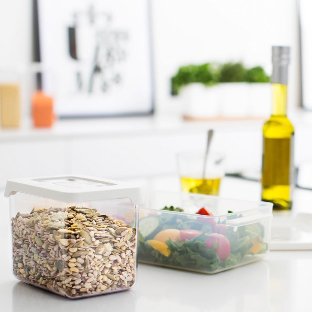 Lufttette, stabelbare og modulære beholdere som holder maten tørr og fersk. Gjennomsiktig lokk gjør det enkelt å se innhold i kjøkkenskuffen. Ideell størrelse for f. Eks. frokostblandinger og mel.