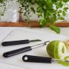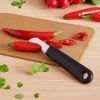 Liten rett skrellekniv med rustfritt stål blad og ergonomisk plast håndtak. Perfekt til og skrelle frukt og grønnsaker.