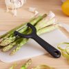 Y formet skreller med rustfritt stålblad. Skreller har et horisontalt blad for raskere og mer komfortabel skrelling. Skrelle bevegelsen er mindre belastende for dine hender enn mer tradisjonelle skrellere. Bladet sviver offølger enkelt alle konturene på frukt/grønnsaken som skrelles.
