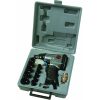 Settløsning i 17 deler som inneholder følgende: 1 stk. mutte rtrekker»1/2″, 10 stk. kraftpiper 1/2″ i størrelsene 9-10-11 -13-14-17-19-22-24-27mm. , 1 stk. forlenger 125 mm. , 1 stk. oljekanne, 1 stk. sekskantnøkkel,2 stk. luftnippel (N+S), 1 stk. minioiler for trykkluftverktøy og solid»bærekoffert me d håndtak. Håndtak med gummiert «Soft Grip» grep. Drivtapp»1 /2 » Boltkapasitet 5/8 » (16 mm. ) Moment, maks 340 Nm