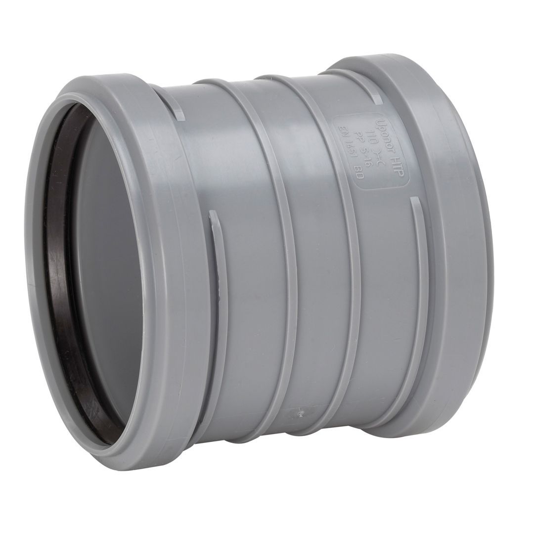 50 mm Uponor IHA dobbelmuffe. PP plast, grå.