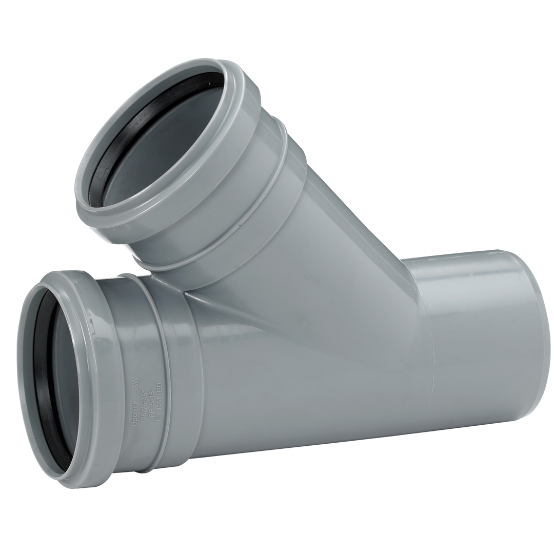 50/50 x 45 Uponor IHA grenrør PP plast, grå.