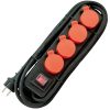 4-veis skjøtekontakt med selvstengende lokk og bryter. Kabel H07RN-F. Godkjent for utendørsbruk. IP44. Med opphengshull.