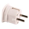 Ujordet støpsel med kabellinntak på siden som gjør at den tar mye mindreplass. Firkantet utforming.
