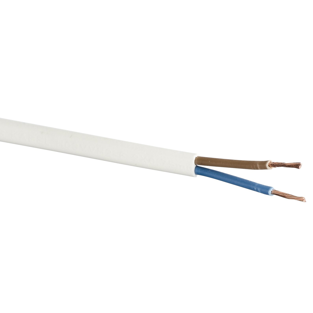 Kabel PL 2 x 0,75 Hvit. 5 meter oval for lampettledning.