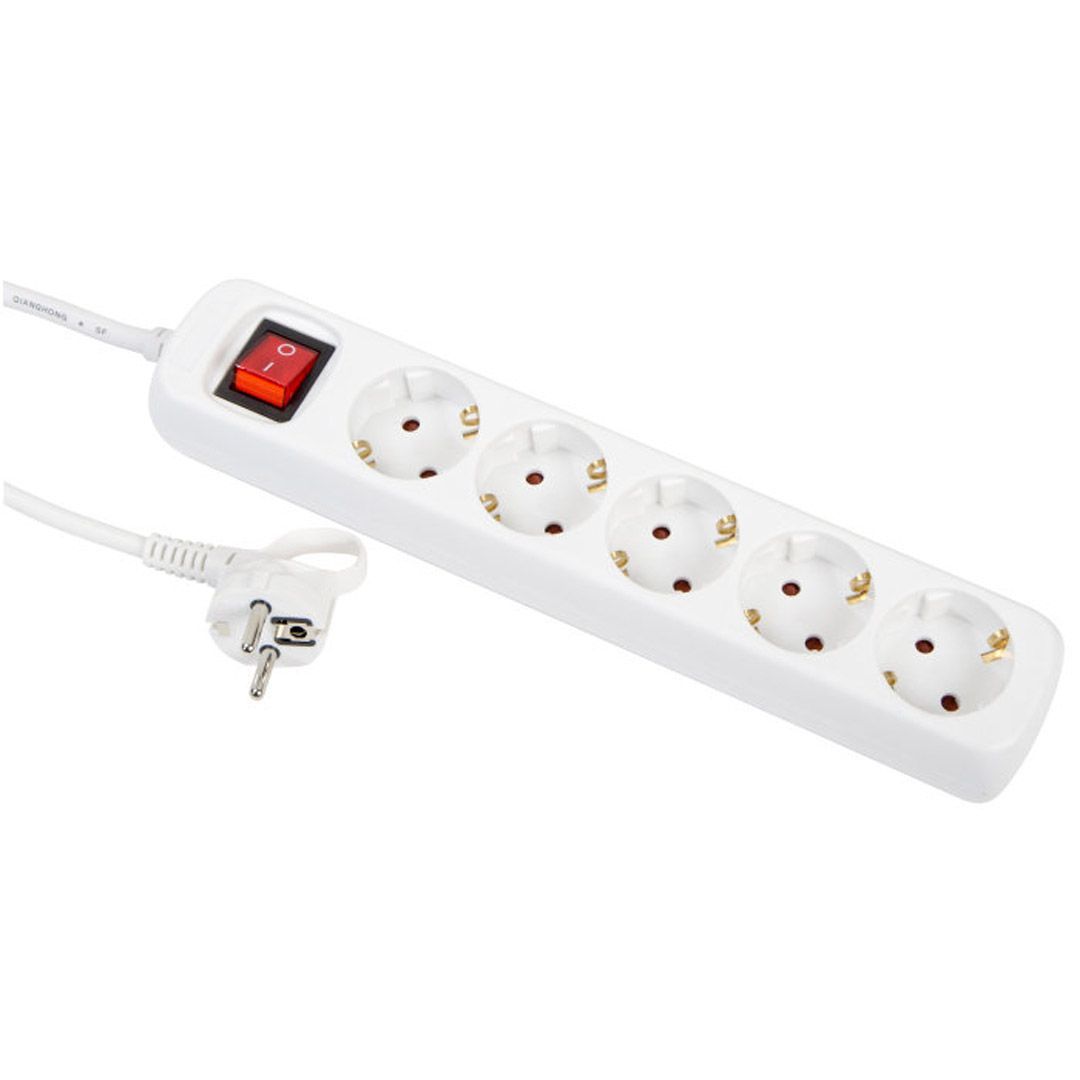 5-veis jordet skjøtekontakt med skråstilte uttak som gir bedre plass tilf. eks. transformatorer. Med AV/PÅ bryter. Ledningslengde 1,5 meter.