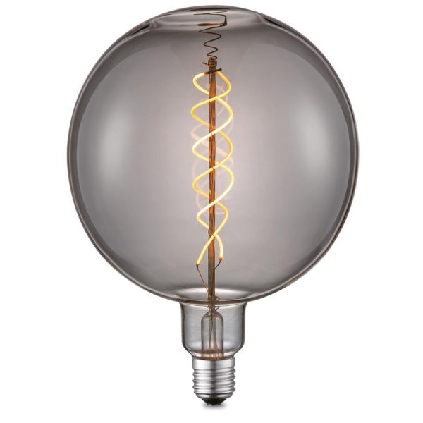 Dette er en stor og dekorativ lyspære med røktonet glass. Lyspæren passer perfekt med en av våre oppheng eller sammen med en stor åpen lampe. Denne lyspæren gir et veldig varmt og fint lys som skaper god atmosfære med sine 100 Lumen. Lyspæren er levert i Ra. >90 som gir en meget god fargegjengivelse. Lyspæren er også dimbar med de fleste elektroniske (Trailing edge dimmere) eller LED vegg dimmere som er og få kjøpt i markedet. Farge temperatur (Kelvin): 2200 (varm hvit). Lumen: 100 ?10 %. Fargegjengivelsesindeks (Ra): >90. Dimbar: Ja. Levetid: Opp til: 15 000 timer = 15 år (ved 2,7 timer pr dag). Spredning på lyset: 340. Antall tennsykluser: 15 000. Form: Globe. Høyde: 230 mm. Diameter: 180 mm. Lyspærens sokkel: E27. Watt: 6W. UV filter: Ja. CE: Ja. RoHS: Ja. Energiklasse: A+.