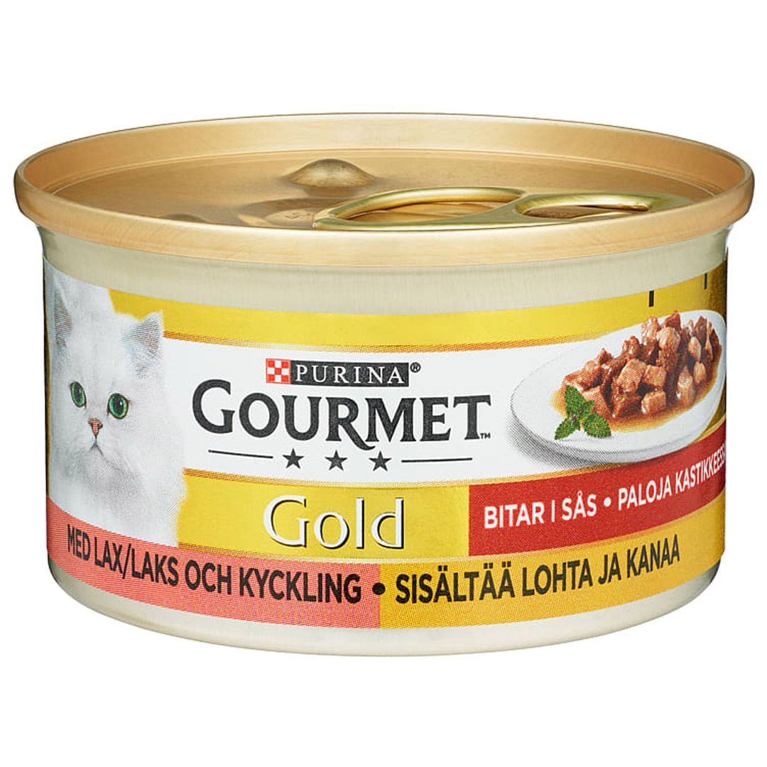 Måltidet er utsøkt tilberedt med nøye utvalgte ingredienser, og er fullt av møre, smakfulle biter som til og med kresne katter vil sette pris på. Hver bit har lekker saus og tekstur, gir katten alle næringsstoffene den trenger for å leve et sunt og aktivt liv. Hvert måltid serveres i en boks på 85 g, noe som garanterer et ferskt måltid, Møre laks og kyllig biter av høyeste kvalitet, tilberedt med omhu for enestående smak opplevelse til voksne katter