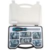 Slangeklemme sortiment med 40 deler Settet inneholder: 1 stk. skrutrekker 12 stk. x 7-16 mm. 10 stk. x 10-23 mm. 10 stk. x 19-27 mm. 4 stk. x 21-38 mm. 3 stk. x 19-44 mm. Leveres i praktisk oppbevaringskoffert.