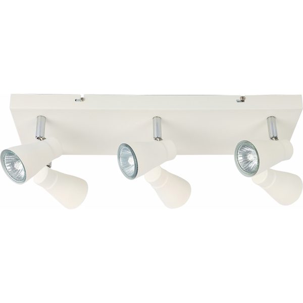 Grenada rektangulær spot med justerbare spothoder er en meget anvendelig lampe med 6 retningsstyrte lys, og er beregnet på bruk i tak. Med 6 spothoder fordelt på lampens kompakte størrelse egner denne lampen seg meget godt der man ønsker mye lys uten å ta opp for mye takplass. De justerbare spothodene gjør det enkelt å justere lyset dit det trengs. Denne lampen blir solgt uten lyspærer så du selv kan velge etter behov.