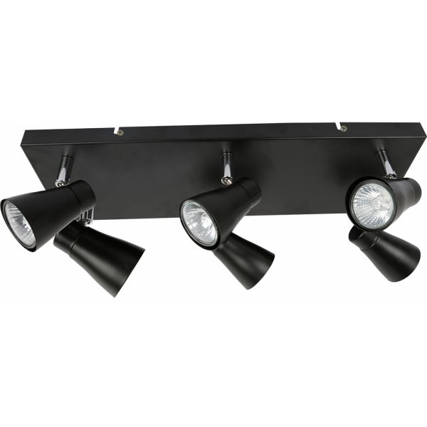 Grenada rektangulær spot med justerbare spothoder er en meget anvendelig lampe med 6 retningsstyrte lys, og er beregnet på bruk i tak. Med 6 spothoder fordelt på lampens kompakte størrelse egner denne lampen seg meget godt der man ønsker mye lys uten å ta opp for mye takplass. De justerbare spothodene gjør det enkelt å justere lyset dit det trengs. Denne lampen blir solgt uten lyspærer så du selv kan velge etter behov.