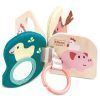 Babyboka Bella av tre og tekstil, inviterer de små utforskere til å føle seg gjennom forskjellige teksturer og materialer. Spesielle effekter som speil og knitrende folie gjør at Hape Babybok Bella blir ekstra interessant. Takket være den praktiske ringen er den lett å feste på barnevogner og andre overflater. Hvis du løsner borrelåsen, kan du enkelt vaske tekstilsidene.