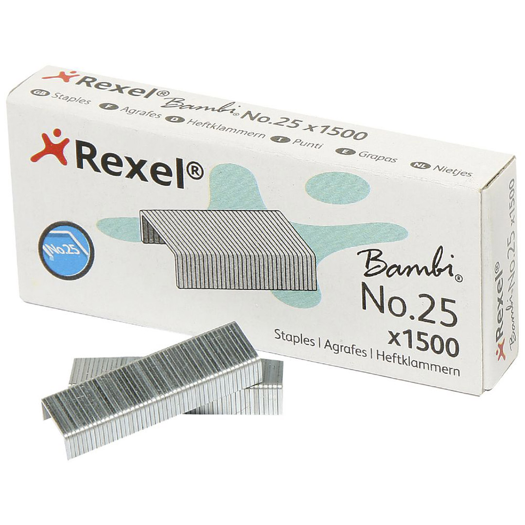 Kraftige heftestifter av solid ståltråd for å garantere best mulig resultat. Nr 25. Bambi. Pakningen inneholder 1 500 stifter