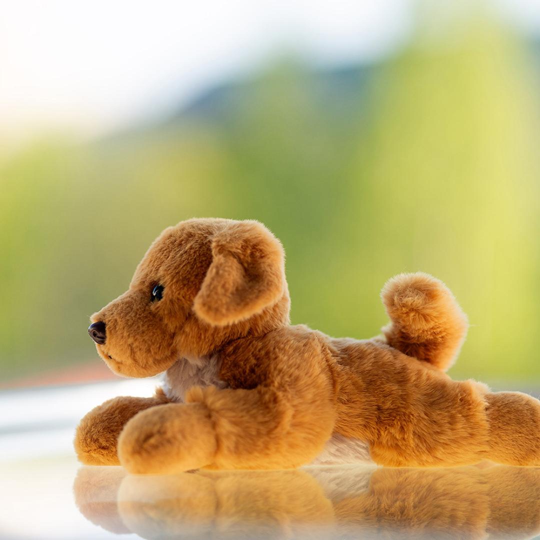 Buster er en trofast og lojal retriever som elsker å leke, løpe og vise frem små kunster. Samtidig er han en hund som setter stor pris på fangkos og rolige stunder med barna sine. Med sine 26 cm har han en størrelse som gjør ham både stor nok for lek og myk nok for nærhet. Buster har bursdag 2. mars og er spesielt glad i vennene sine Vicky og haren Jumper, som han deler mange fine stunder med. En trygg og kjærlighetsfull følgesvenn for barn som liker hunder.