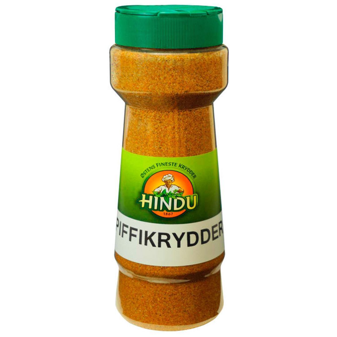 Ingredienser: Salt, msg, paprika, løk,chili, timian, muskat, pepper, cumin, hvitløk, ingefær, sitronsyre, oregano, allehånde, selleri, koriander, gurkemeie, stjerneanis, bukkehornsfrø, kardemomme.