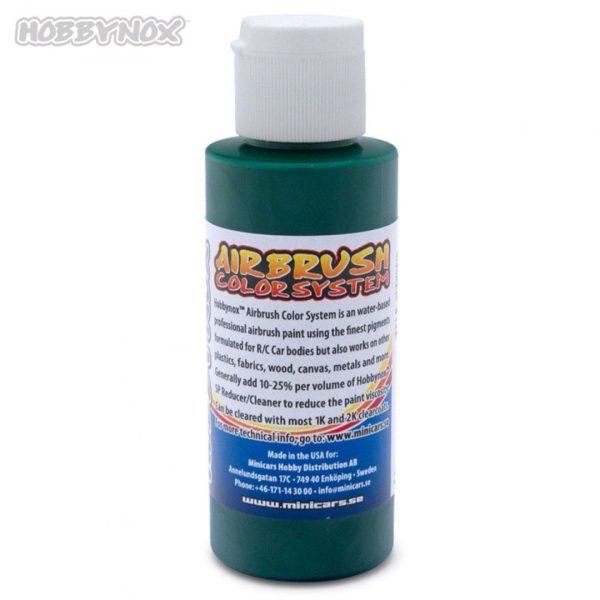 Hobbynox vannbaserte airbrush-maling er laget med lysfaste pigmenter, holdbare harpikser og kvalitetsingredienser. Hobbynox Airbrush Colors fungerer på polykarbonat (Lexan) og de fleste andre plast, tekstil, tre, metaller, keramikk, plakatplater, og glass. Fargene er vannbaserte og giftfrie. Hobbynox Airbrush Colors forblir fleksible og motstår sprekker, flising og de fleste støtskader.