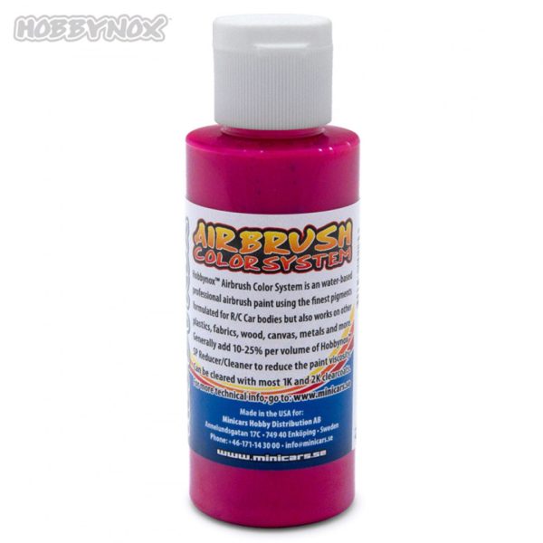 Hobbynox vannbaserte airbrush-maling er laget med lysfaste pigmenter, holdbare harpikser og kvalitetsingredienser. Hobbynox Airbrush Colors fungerer på polykarbonat (Lexan) og de fleste andre plast, tekstil, tre, metaller, keramikk, plakatplater, og glass. Fargene er vannbaserte og giftfrie. Hobbynox Airbrush Colors forblir fleksible og motstår sprekker, flising og de fleste støtskader.