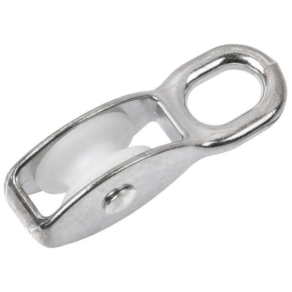 Elforsinket blokkrulle. Mål: Lengde 70 x Bredde 28 mm. Inntil ?7 mm. vaier 1 stk per pose.