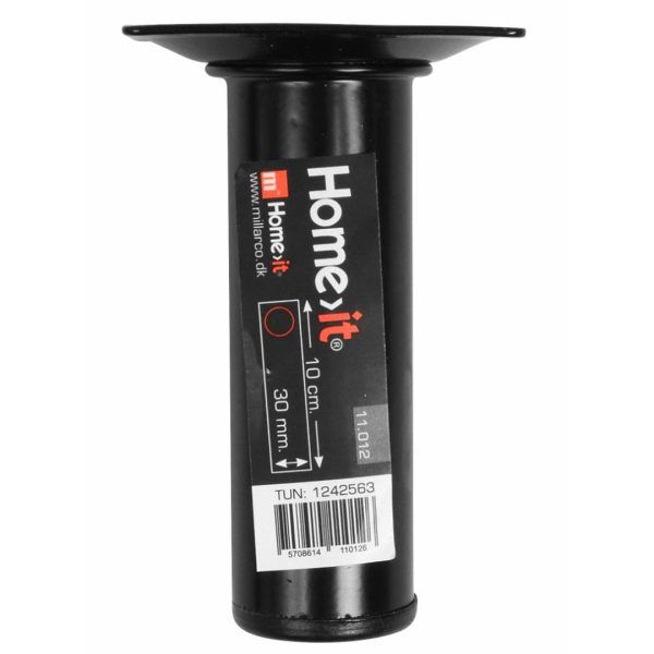 Home IT bordbein. Diameter: 30 mm. Lengde: 10 cm. Farge: Svart. Endehette med gjenge til stillskrue.